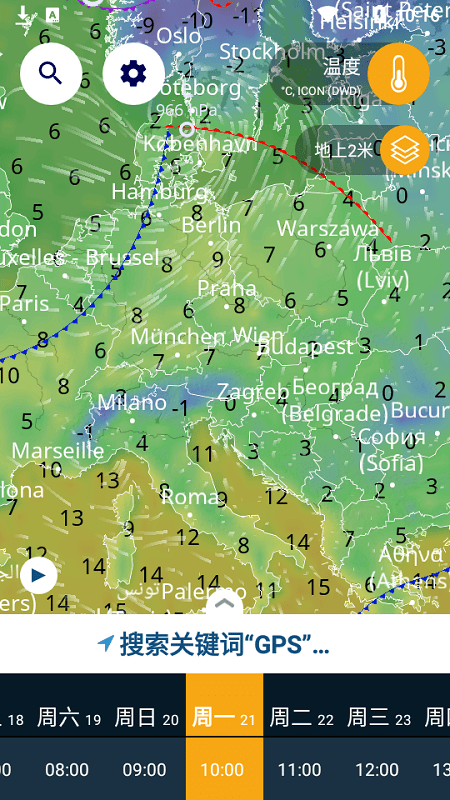 2、该应用程序还显示来自加拿大GEM和德国ICON模型的数据。这种独特的数据归因于它向全世界提供的高分辨率。