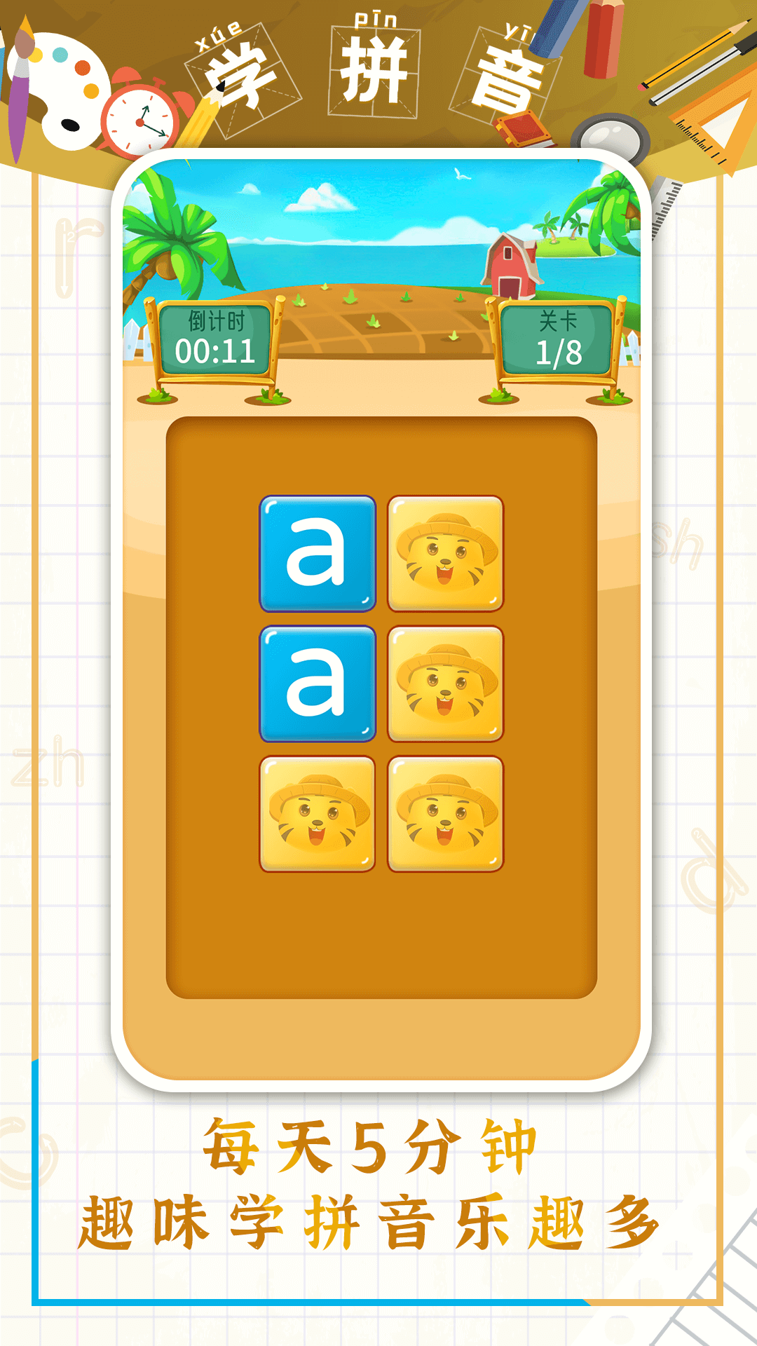 3、汉语拼音童谣游戏模式,用歌曲生动地复习你学过的汉语拼音,非常有趣。