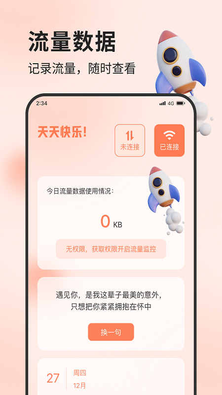2、可以轻轻松松的掌握到自己每天上网使用的流量数据消耗,及时的控制;