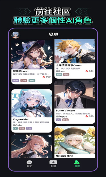 2、前往社区,体验鞥更多个性AI角色,实时感受更多服务;