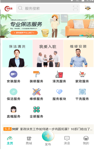 988同城:这是一款很不错的生活服务软件,应用有家政服务,商品,装修等多个专区服务,用户只需要简单的进行注册即可获得这些便捷的服务了,保洁清洗服务在线上即可预约上门时间,所有保洁人员都是经过专业的培训的用户可以放心使用,首次使用还能享受8折优惠,专业的维修安全服务也是相当好用的,喜欢的话就来下载体验吧。