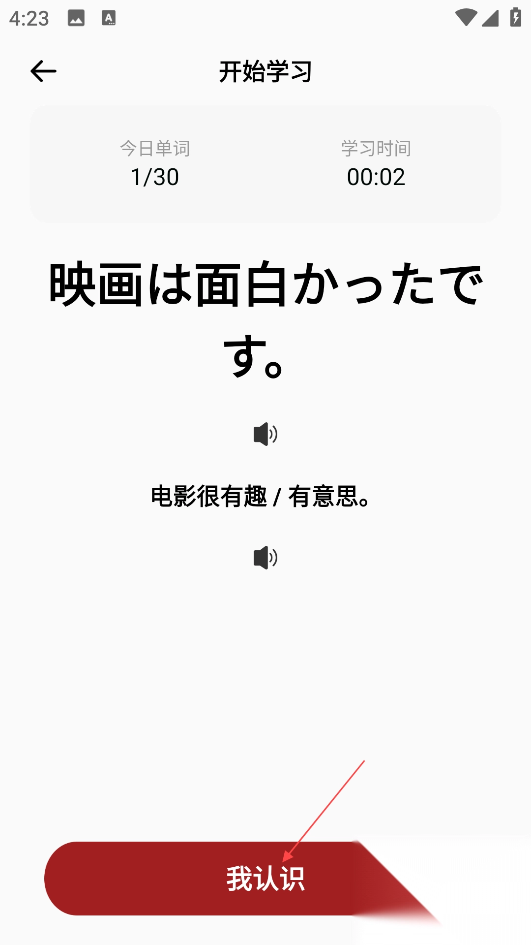 2、点击“日语单词”图标,即可进入单词界面开始学习。