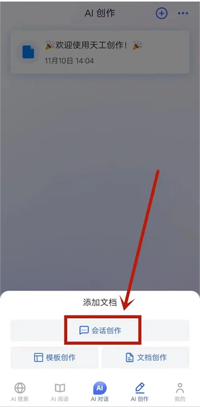 2、点击“AI对话”。