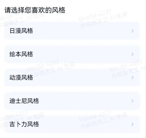 4、目前支持日漫风格、绘本风格、动漫风格、迪士尼风格、吉卜力风格。