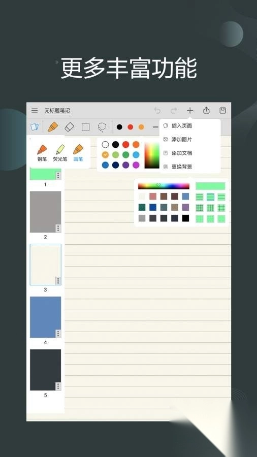 * 纸张格式多样,可选择横线、格式、小圆点样式,也能采用康奈尔笔记形式,还能设置任意纸张颜色,甚至可以自制背景纸张。