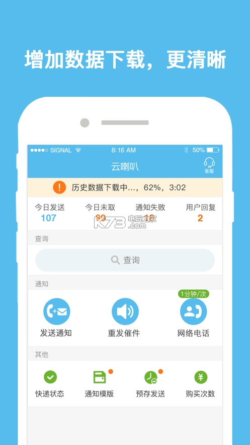 云喇叭APP堪称快递通知领域的神器,它能助力快递员实现自动打电话与发短信,以此通知用户前来取快件。当下,全国每日数千万的快递,大多依赖快递员人工通知用户取件。而云喇叭借助云中心服务器以及移动互联网技术,打造出快递通知机器人。其核心功能包括批量自动语音与短信通知用户,还支持实时查看发送状态,以及查询历史数据,全方位帮助快递员提升工作效率、节省时间与费用。