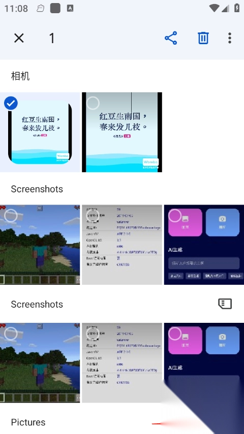 (4)轻触并按住一张您想要移至回收站的照片,然后选择另一张要移至回收站的照片。