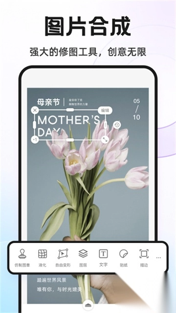 4、大量精美贴纸及背景素材,帮您移花接木神奇旅行。