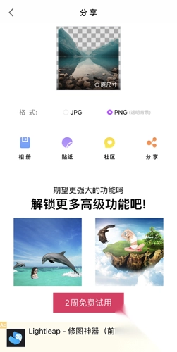 支持导入透明PNG图片,支持导出透明PNG图片。