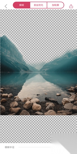 5、抠图完成后,我们就可以点击下一步进行优化了。在模糊、发丝优化及加轮廓中选择需要的功能进行添加即可。