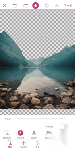 3、在此界面里,用户们能够选择智能抠图、人像抠图、抠图章、魔法棒和快速选择来进行抠图。