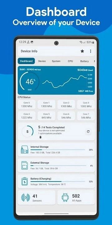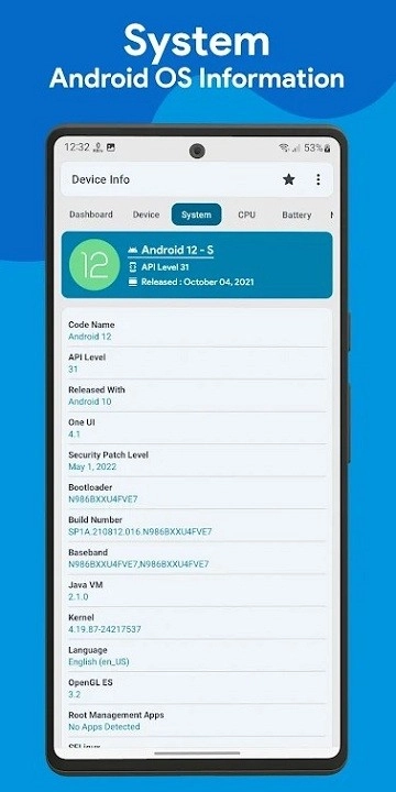 1.随时查看设备名称、型号、主板等,并管理所有应用。