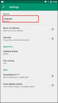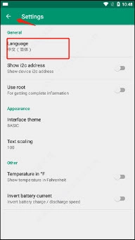 1. 开启Device Info并进入其主页,此时可以看到系统默认语言设定为英文。