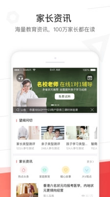 1、【家长资讯】提供海量教育资讯,助力家长知悉更多教育政策,为孩子更优地规划学习方向提供帮助。