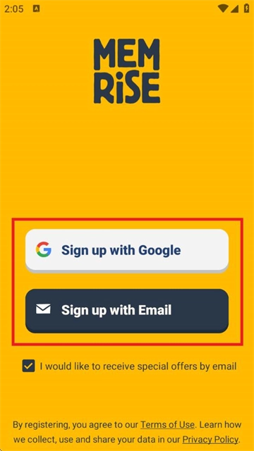 3、于注册页面,选择【Signup with Google】或者【Signup with Email】来完成注册。