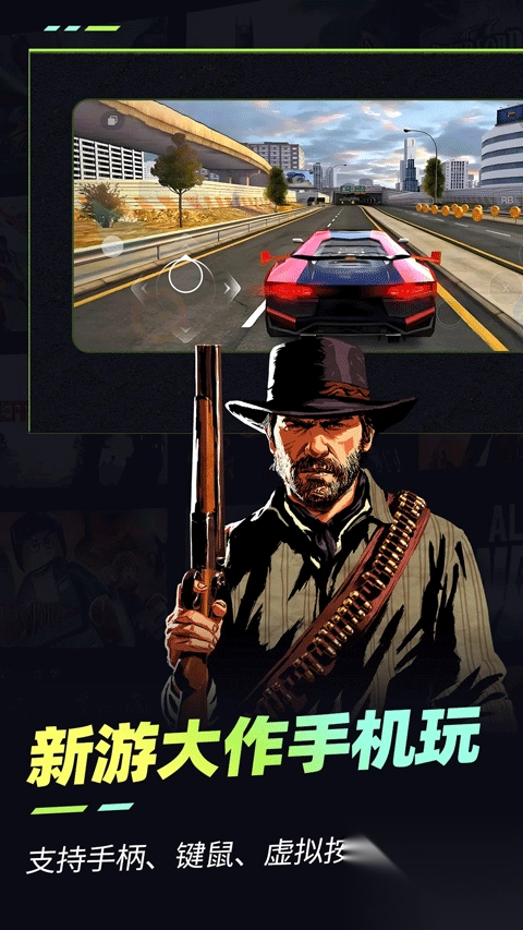 随时随地,海量游戏免费畅玩!、绝地求生、 全面战争模拟器、奥特曼进化格斗、地平线4、 看门狗、方舟、火影忍者究极风暴4、赛博朋克2077、 正当防卫系列、荒野大镖客2、育碧全家桶、模拟人生4、 古墓丽影系列,策略类、休闲类、角色扮演类、三国题材、 对战模式等等网游3A单机大作通通都有!