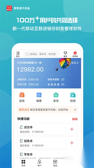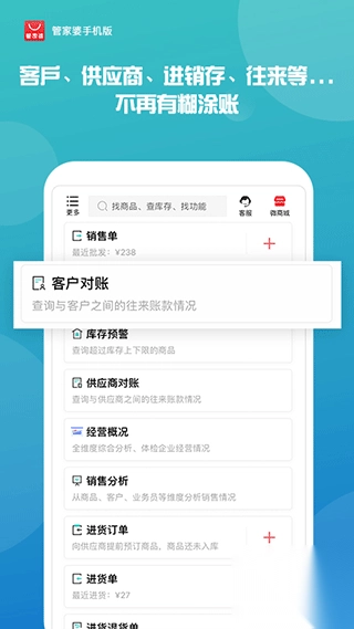 管家婆手机版适用关于批发业务、零售业务、批零兼营以及小型连锁和小微型企业,以物流、钱流、信息流为核心,帮助企业实现对采购、销售、库存、门店、财务等各个环节的管控,随时随地开启指尖上的管理!