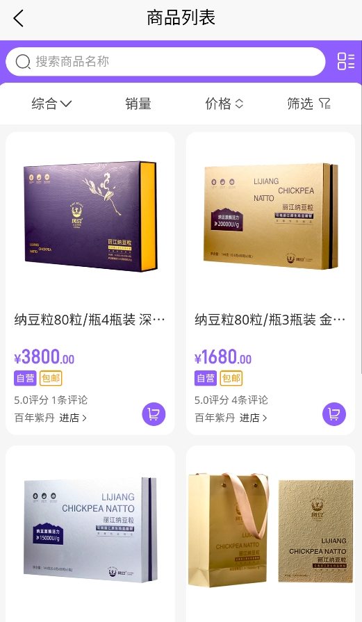 2、借助“分类导航”,能够浏览各不同产区的特色商品,并且支持依据价格、销量等条件进行筛选。
