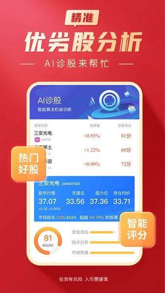 大阳智投APP安卓版是一款极为实用的证券投资理财工具。该软件能为用户呈现最新的证券市场动态信息,使用户可以及时洞察证券市场的变化,进而妥善调整投资理财计划。不仅如此,软件中还有诸多业界资深人士对股市变化进行剖析,并分享炒股经验,助力普通用户更深入地理解股市变化,关注目标股票的波动情况,以便及时进行买入和卖出操作。