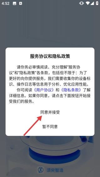 1、在服务协议和隐私政策弹窗,点击【同意并接受】,进入登录页。