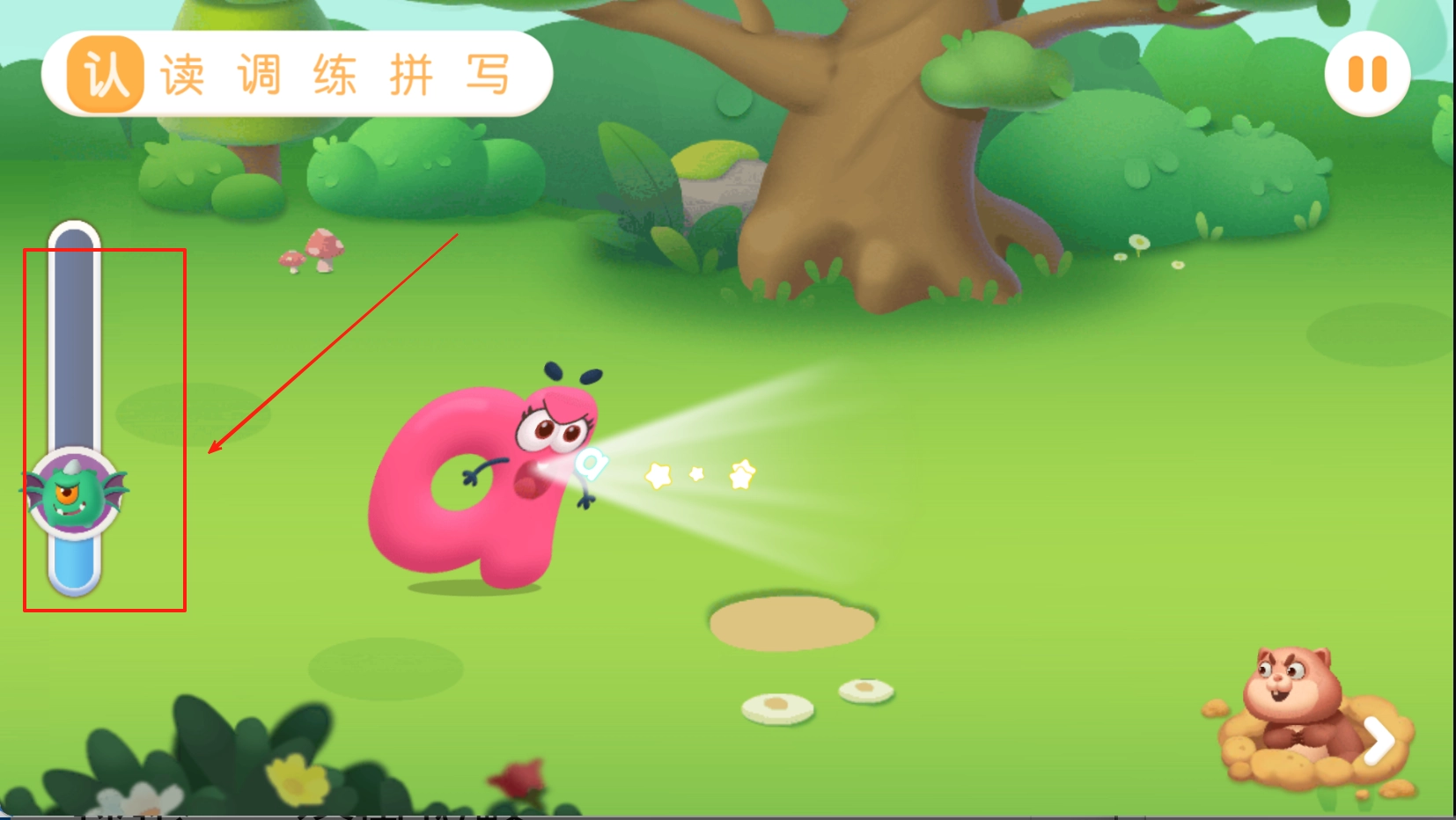 2、乐园挑战模式:在虚拟场景中完成收集拼音字母的任务。迷你游戏包含钓鱼认声母、火车连音节等创意形式,将知识融入娱乐。
