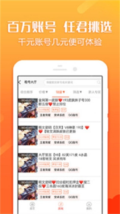 2、浏览账号:搜索或分类查看海量账号,选择喜欢的资源。