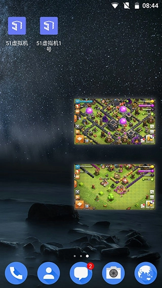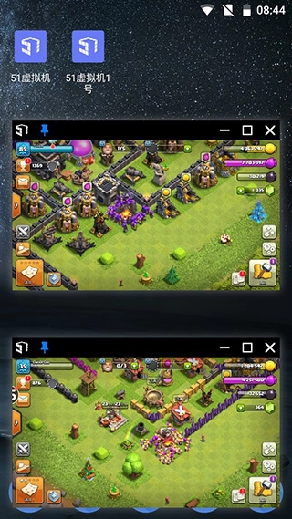 51虚拟机能够让一部手机同时运行多个51虚拟机实例,实现多窗口功能。在一部手机上,你可以同时以5个小窗口的形式玩5个账号,是组队升级的得力助手。