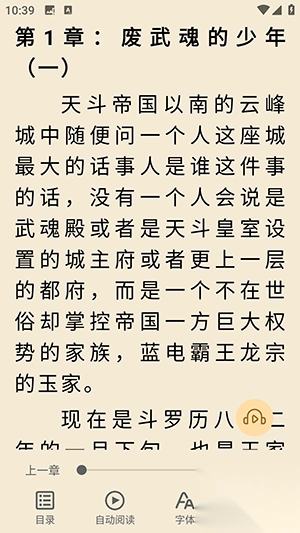 3、在阅读界面中,轻触一下屏幕,屏幕下方便会显示阅读界面设置。