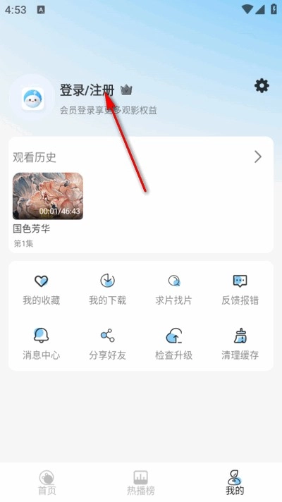 1. 开启软件,点击“我的”选项,接着点击上方的“登录/注册”按钮。