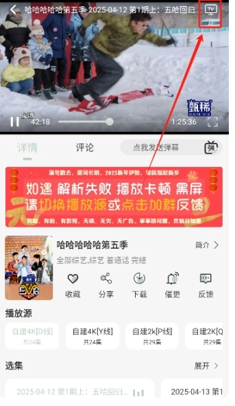 2、点击右上角的tv图标