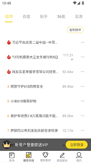 2. 推荐热搜板块呈现多平台热搜资讯,助力您轻松产出契合当下趋势的内容。