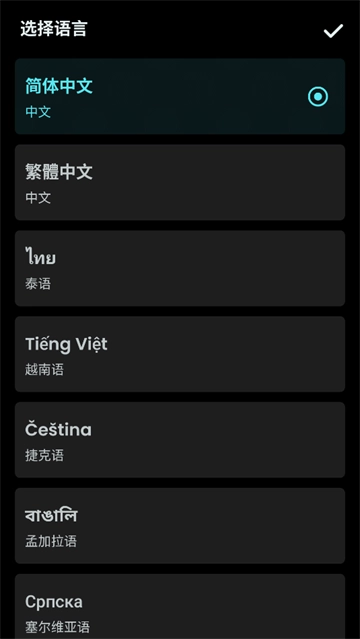 1、打开AIFoto软件,在选择语言界面选择简体中文,点击右上角的按钮进入主界面