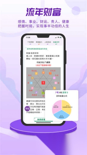 3. 流年财富规划:深度剖析感情、事业以及财运等多个维度的流年运势,助力用户制定更为精确的决策。