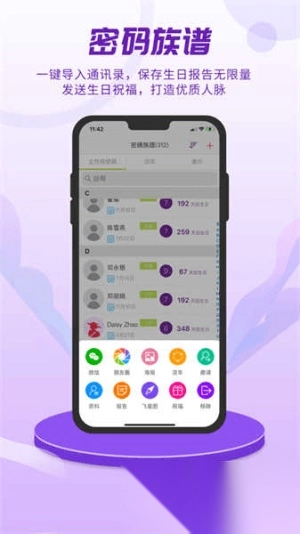 在密码酷软件的首页,用户能够创建一个密码族谱,还能把自己的亲戚信息记录在其中。