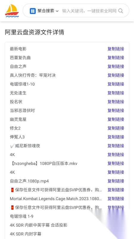 资源类型丰富:千帆搜索包含影视作品、音乐文件、电子书籍等多种资源类型,能够满足用户多样化需求。