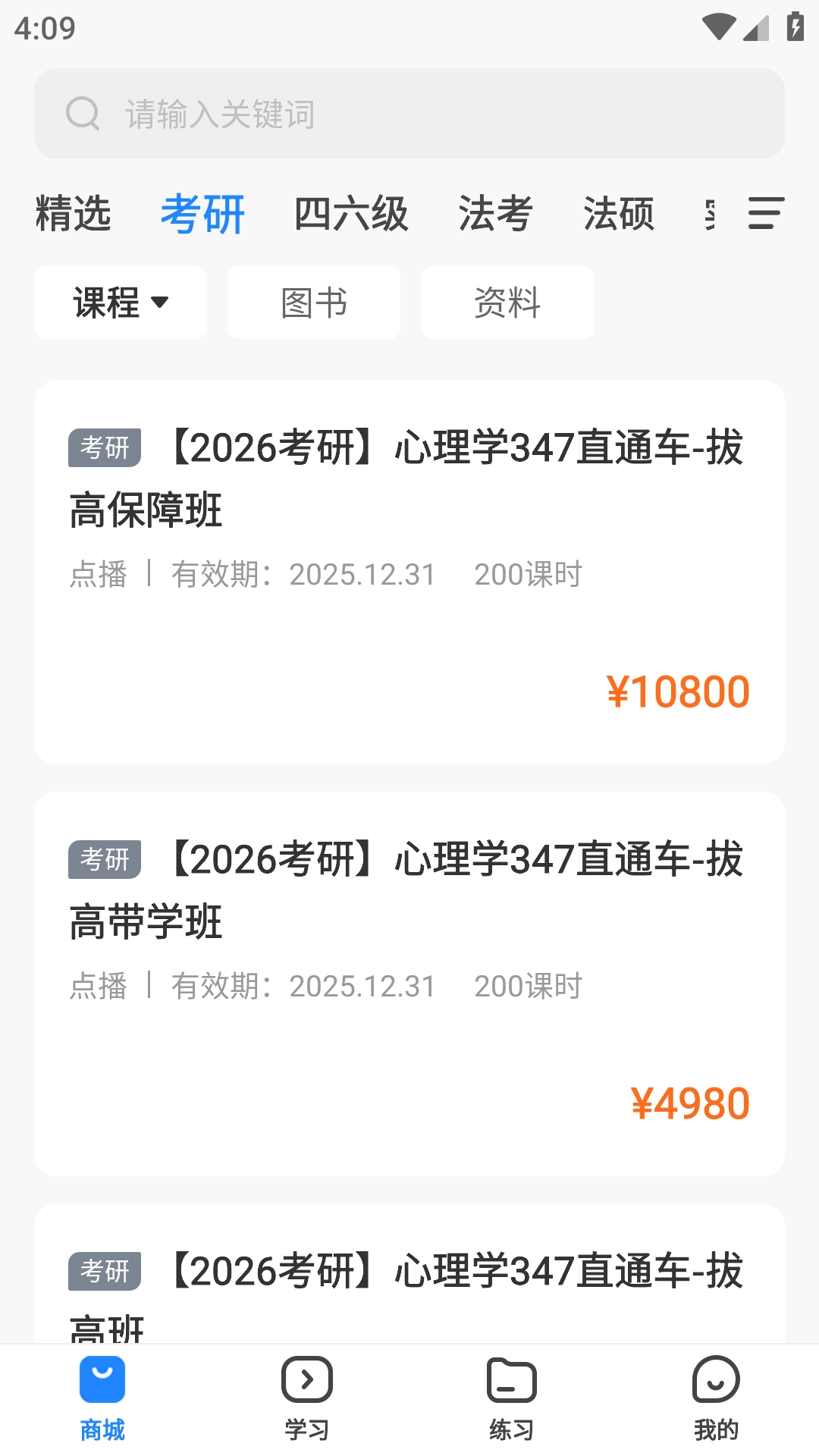 1、【商品推荐】依据考生所选的考试类型,以及语音搜索、关键词搜索的结果,推荐与之相关的商品。