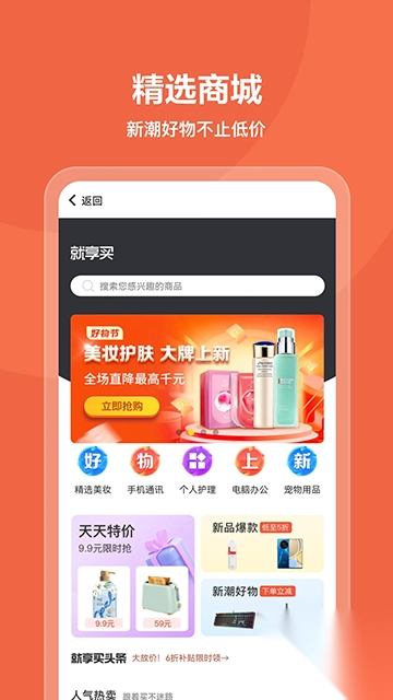 6、来就享买商场,3C数码、美妆、百货等品类一应俱全,随心挑选。