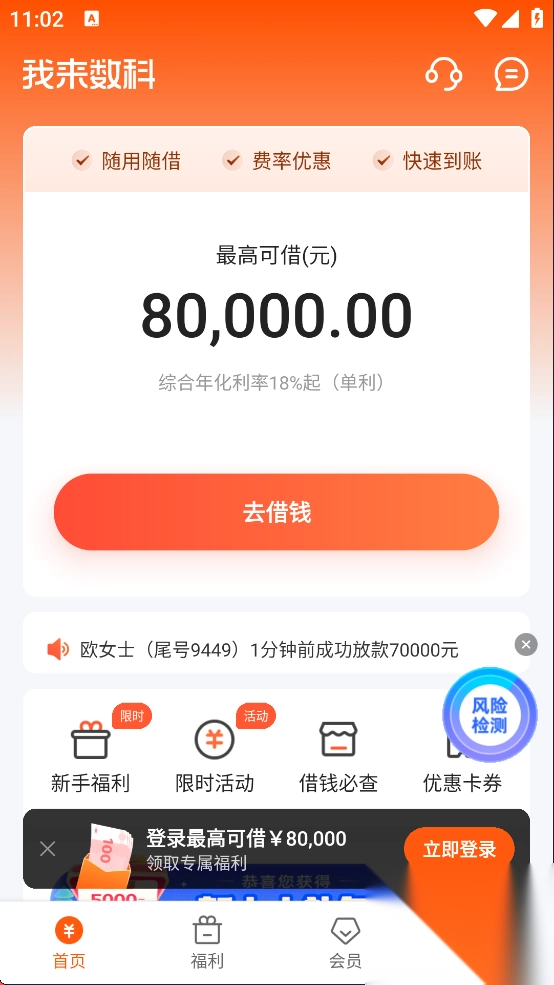 我来贷,又名我来数科,是一个专业的借贷平台。平台配备自主研发的风险管理系统,借助该系统,你能够实时监控个人金融产品,有效预防并阻止潜在金融风险。此外,凭借领先的大数据与先进的人工智能技术,平台为消费者提供专业的科技保障。这款软件致力于运用自主研发的科技优化金融服务,从而改善人们的生活。用户在该平台借款,可享受信用贷、零门槛、线上签约等服务。你只需凭借个人身份信息与借贷信用申请贷款,随后通过人工审核实现极速审批,全程线上操作,无需面对面签约,对于工薪族而言,能极为便捷地快速贷款。
