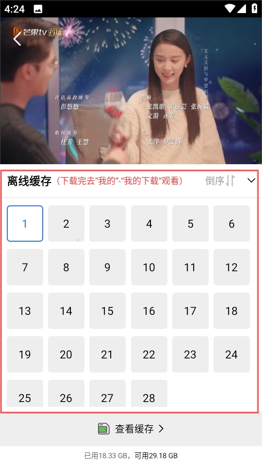7. 只需选择想要缓存的集数,就能开始缓存操作。完成后,点击“查看缓存”,便可查看已下载的影视内容。