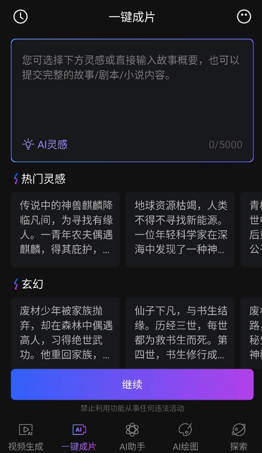 3、在“剧本创作”板块,可提交完整的故事大纲,系统将通过AI自动进行分镜处理,并生成时长为1 - 3分钟的短视频,同时支持以灵感关键词来触发创作。