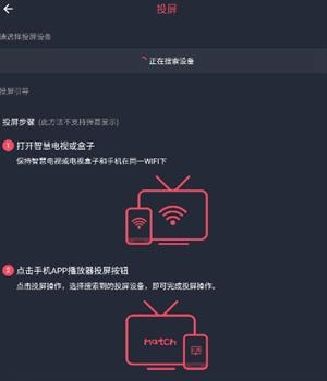 4、最后等待系统自动搜索电视设备,连接成功后就能进行投屏。(注意:若想投屏到电视,电视和手机需处于同一WIFI网络环境下。)