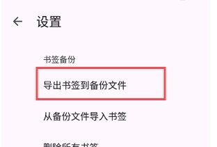 3、在书签备份当中点击导出书签到备份文件