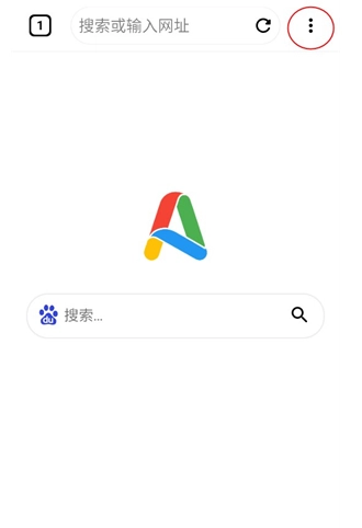 1、打开app,映入眼帘的默认搜索引擎是百度,若想切换成其他搜索引擎,点击右上角的三个小点。