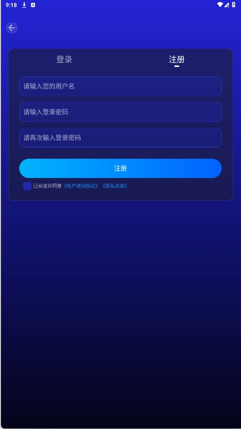3、若您尚未拥有账号,可前往注册页面,填入用户名,设定登录密码,随后点击“注册”按钮即可完成注册。