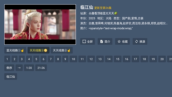 3、多线路切换:提供“蓝光线路①”“天天线路2”“优酷”等多种播放源,若遇卡顿,一键即可换源。