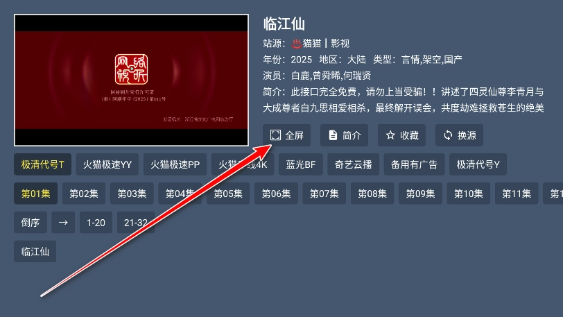 6.随机选择并点击一个播放源。