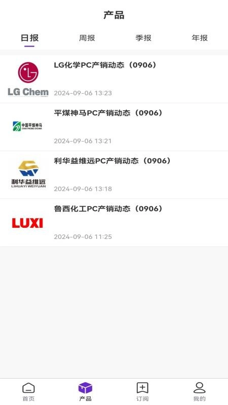在产品中心可以对各种产品日报、周报、年报等动态内容进行全面的查看了解。
