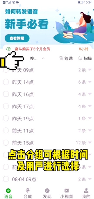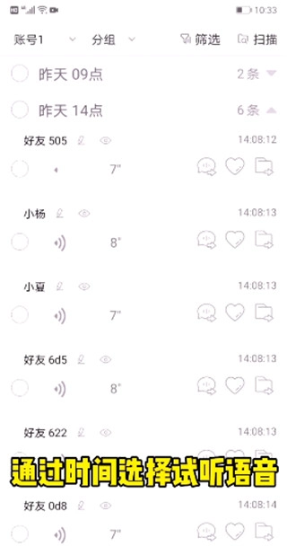 5、筛选功能可指定选择某时间段内的语音,让查找更加便捷。