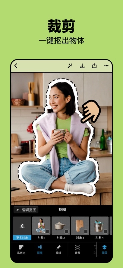 5、使用“智能抠图”或“背景替换”功能,快速选中人物并更换背景,让照片更具创意和个性。
