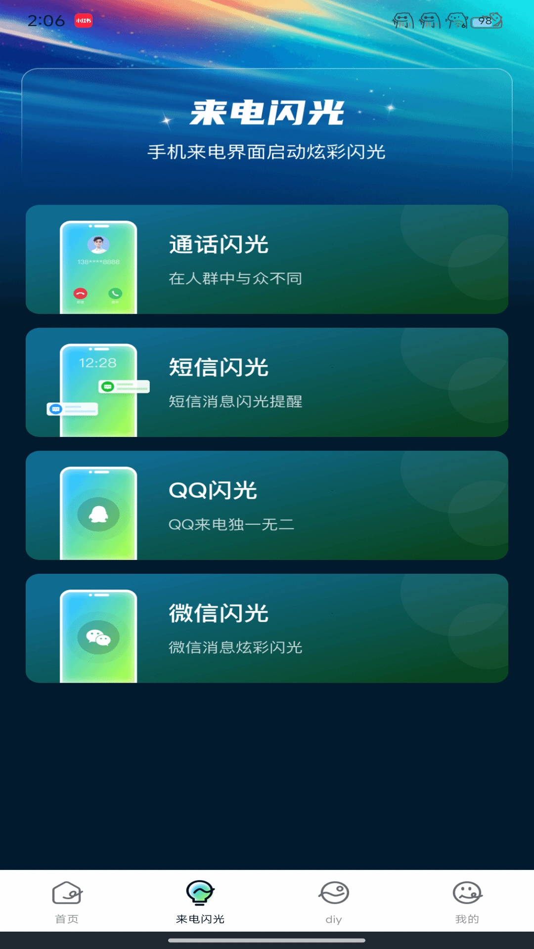 1. 提供通话、短信、QQ、微信等消息的提醒闪光功能,用户能够自行设定闪烁频率与颜色,让手机互动体验更具炫酷感。